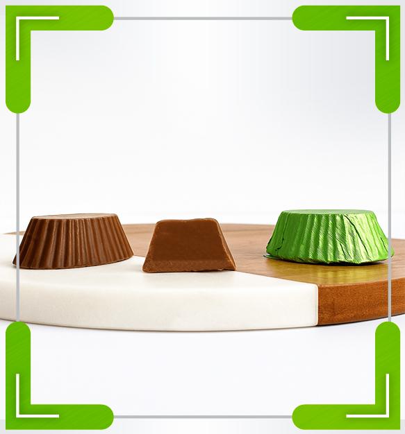 شوكولا محشيه كريمه بنكهة البندق مغلفه باللون الاخضر وبشكل جميل و أنيق .