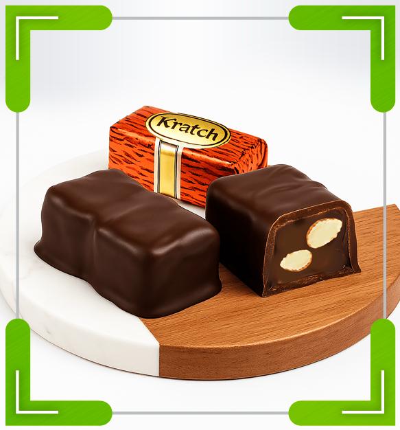 راحة فاخرة منكهة بالمستكة محشية باللوز المحمص مغطاة بالشوكولا الشقرة .