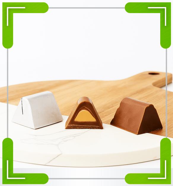 شوكولا بشكلها المثلث المميز محشيه بكريمة اللوتس الرائعة .