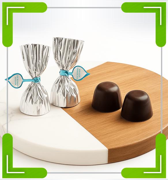 Delicious chocolate filled with hazelnut-flavored cream, wrapped in a beautiful, elegant silver wrapper.