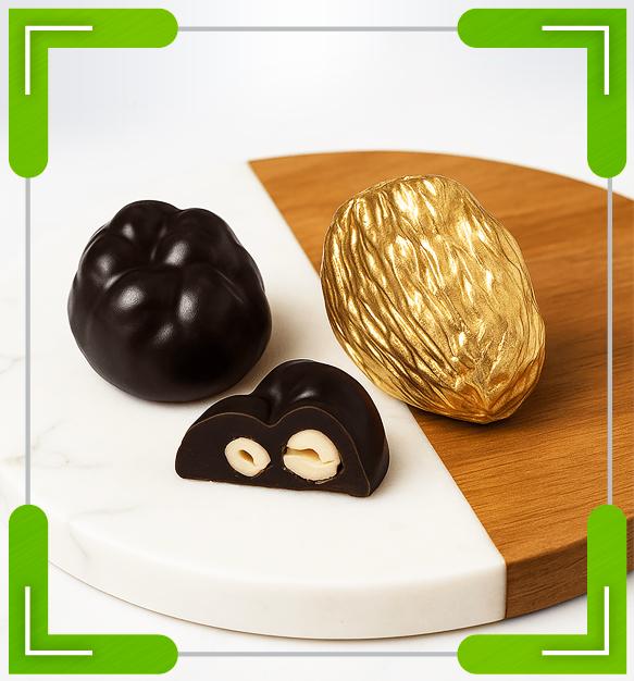 Large size, uniquely shaped chocolate filled with tasty, roasted hazelnuts.