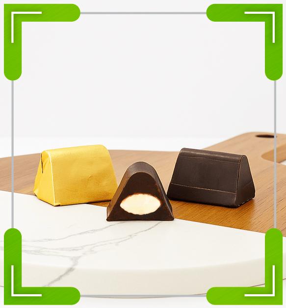 Kratch Chocolate A triangular shaped chocolate with Roasted Almond filling.